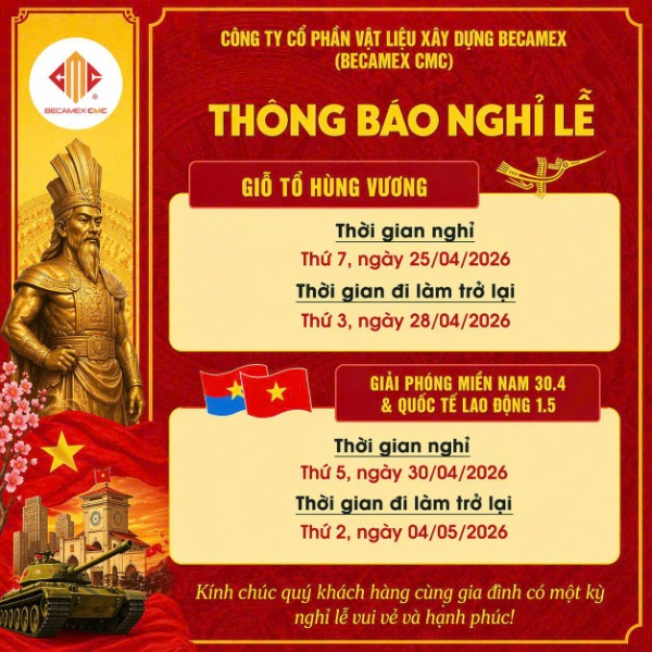 Thông báo nghỉ lễ ngày Giỗ Tổ Hùng Vương (10/3 Âm lịch), ngày Chiến thắng 30/04 và ngày Quốc tế lao động 01/05/2026